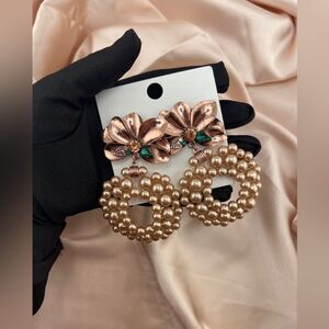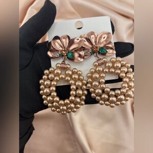 Make a bold statement with these glamorous pearl hoop earrings. Featuring intricate flower-shaped studs adorned with sparkling crystals and green accents, these earrings combine classic elegance with modern flair. The double-layered pearl hoops add depth and sophistication, making them perfect for formal events, weddings, or any occasion where you want to shine. Lightweight yet durable, these earrings are a stunning addition to your jewelry collection and a thoughtful gift for someone special.