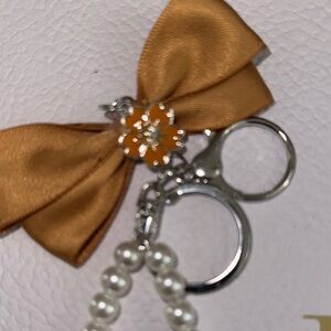 Add a touch of elegance to your accessories with this beautiful keychain. Featuring a classic pearl design complemented by a chic gold bow, it's perfect for any occasion.