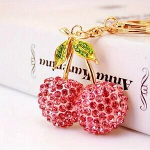 Add a touch of elegance with this stunning pink cherry keychain. Perfect for any occasion.