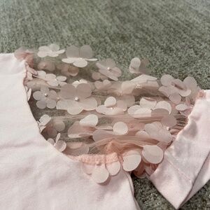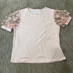 Elegant Pink Embellished Top with 3D Sheer Sleeves – Size Medium