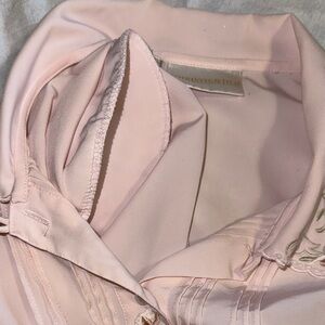 Chic and stylish pink blouse with delicate embroidery and pearl buttons. Perfect for adding a touch of elegance to any outfit.