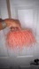 This chic pink ostrich feathered handbag adds a touch of elegance to any outfit. Perfect for special occasions or a night out. Convertible straps.