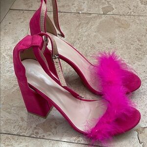 NWOT Step out in style with these elegant pink heels featuring a chic feathered design. Perfect for adding a touch of glamour to any outfit.