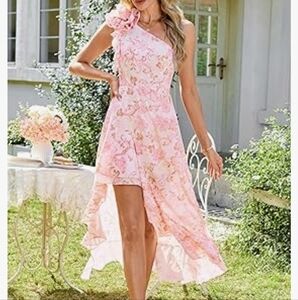Elegant Pink Floral Hi Low One-Shoulder Dress NWT