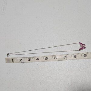 Elegant Pink Gem Butterfly Pendant Necklace Silver Tone Chain Fashion Jewelry