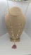 This pretty boho necklace features a beautiful pink glass pendant with pink (real) pearls & rose quartz & swarovski crystals in gold accents, perfect for adding a touch of fun to any outfit.
