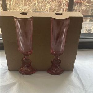 ❤️Elegant Pink Glass Champagne Flutes🥂