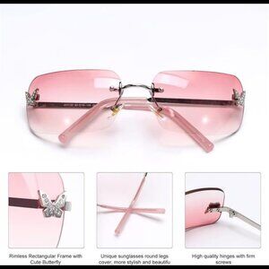Elegant Pink Gradient Butterfly Rimless Sunglasses with Crystal Accents