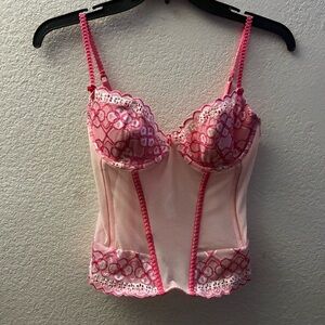 Elegant Pink Lace Corset Bustier Top With Straps L