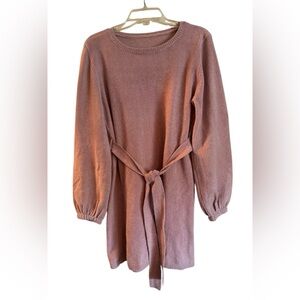 Step out in style with this elegant pink blush color long-sleeve sweater dress. Perfect for any occasion, it features a flattering tie waist and a chic design. Elevate your wardrobe with this versatile piece.