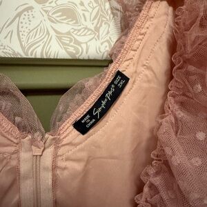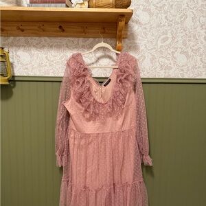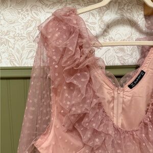 Step out in style with this elegant pink ruffle dress. Perfect for any occasion, this dress features a flattering silhouette and delicate ruffle details. A must-have addition to your wardrobe.