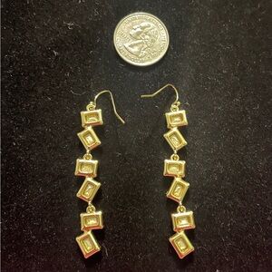 Chic and stylish drop earrings. Features pink square stones. Perfect for any occasion.