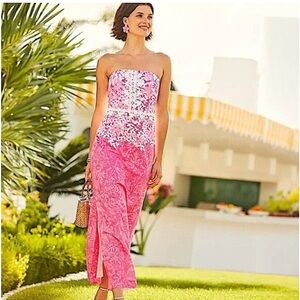 This elegant pink strapless dress is perfect for any occasion. Its vibrant color and stylish design make it a must-have in your wardrobe.