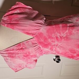 Elegant Pink Tie-Dye Pink Maxi Dress. Sage Collrctive Size 8. Sheer Overlay.