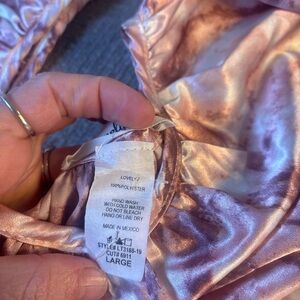 Lovely J Tie-Dye Satin Puff Sleeve Blouse – Pink & Peach – Size Large