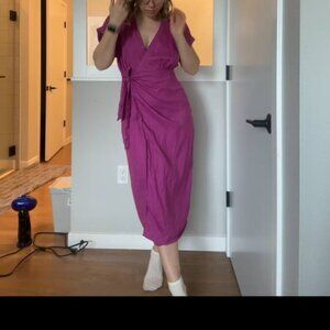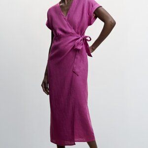 This elegant pink wrap dress is perfect for any occasion. Its flattering design and vibrant color make it a must-have in your wardrobe.