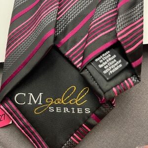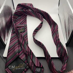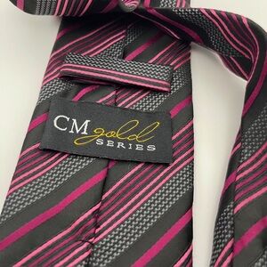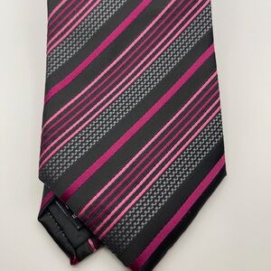 Elevate your style with this elegant pink and black striped tie. Perfect for any formal occasion.