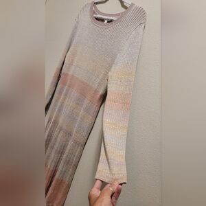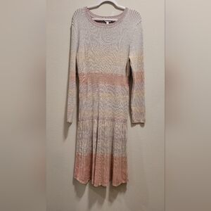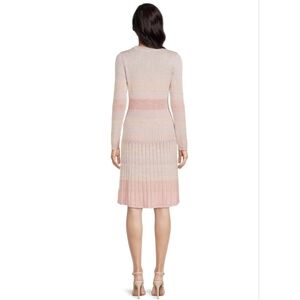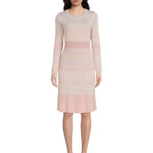 This elegant knit dress features a beautiful blend of pink and cream hues, perfect for any occasion. Its soft fabric and flattering fit make it a must-have addition to your wardrobe.