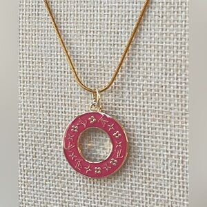 Elegant Pink and Gold LV Pendant & Chain Necklace