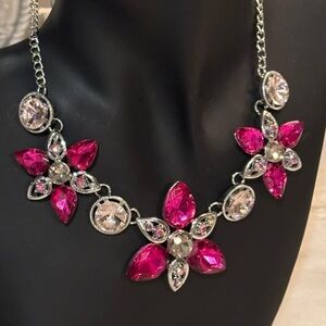 This stunning necklace set features vibrant pink and silver floral designs, perfect for adding a touch of elegance to any outfit.