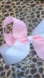 Delightful pink and white hair bow, perfect for adding a stylish touch to any child's outfit. A must-have accessory for playful elegance. Handmade boutique bow