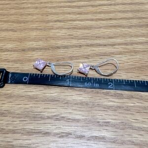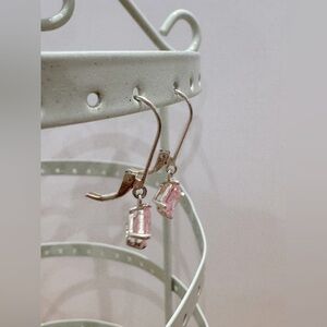 Add a touch of elegance with these stunning pink dangle earrings. Perfect for any occasion. Super sparkly! Simple and understated diamond design.
