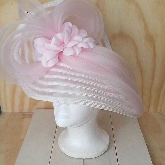 This elegant pink hat is perfect for any special occasion. Its delicate design adds a touch of sophistication to your outfit.