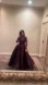 The fit is very flattering and snatched at the waist, with a graceful flow through the skirt. Color is a deep plum / wine tone that photographs beautifully.