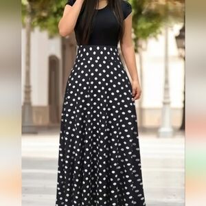 Step out in style with this elegant black and white polka dot dress. Perfect for any occasion, this dress combines classic design with modern flair. Enjoy the comfort and chic look it offers.