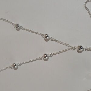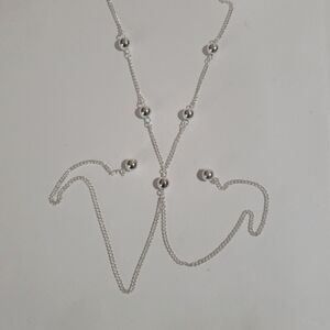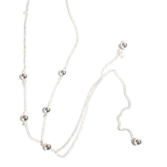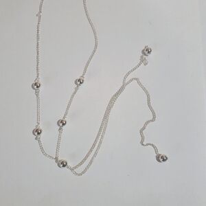Elegant Polished Silver Tone Beads Fringe Long Necklace, Women's Fashion Jewelry