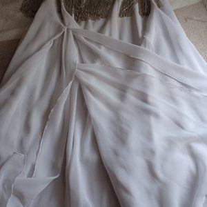White Custom-Made Skirt: Add a classic touch with our used professional white skirt, available for only $25. This custom-made item is designed for a 26-inch waist and has a length of 36 inches, ensuring a graceful flow as you move.