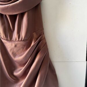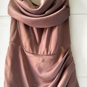 This elegant pink dress features a sophisticated draped neckline, perfect for any special occasion. The pink color adds a touch of luxury to your wardrobe. Size XS