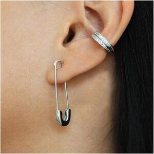Elegant Punk Safety Pin Hoop Earrings 33mm - Hypoallergenic Silver Jewelry