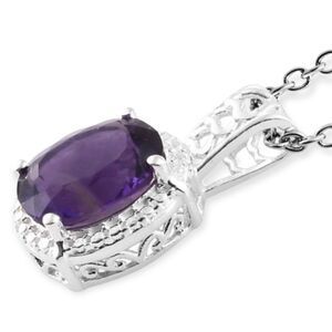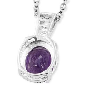 Fine jewelry, elegant purple amethyst gemstone necklace 20” Faceted oval African purple amethyst gemstone prong set in an open heart detailed pendant, sterling silver curb link chain, magnetic clasp closure.