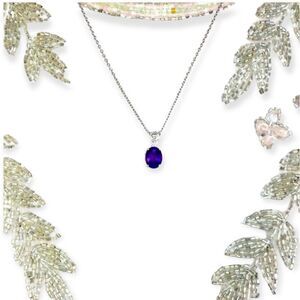 Elegant Purple Amethyst Hearts Platinum Silver Necklace NEW