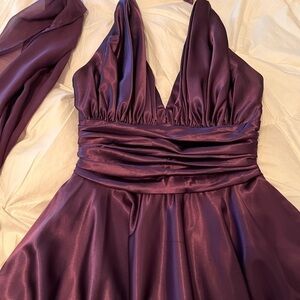 This stunning backless dress in a rich purple hue is perfect for any special occasion. Its elegant design and luxurious fabric make it a standout piece in your wardrobe.