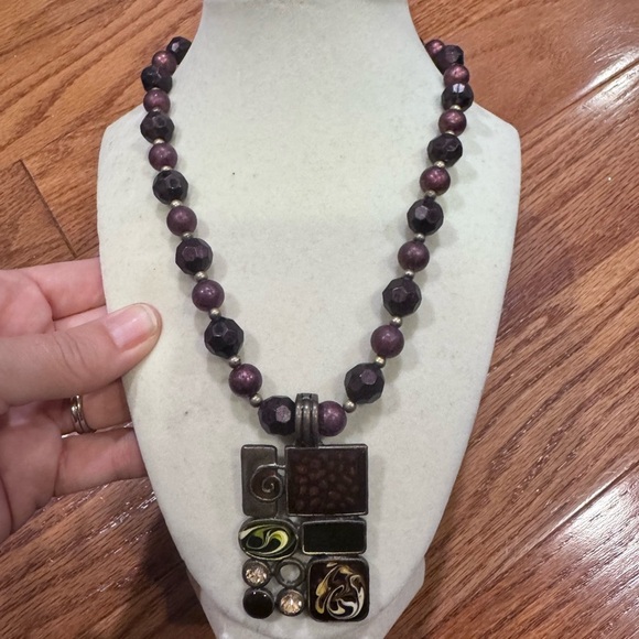 This elegant necklace features rich purple beads and a unique pendant design, perfect for adding a touch of sophistication to any outfit.