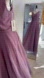 This stunning purple evening gown features a delicate floral waist detail, perfect for special occasions. The flowing design offers elegance and grace.