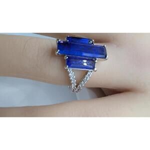 Elegant silver ring featuring three rectangular Purple gemstones.