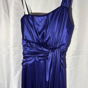 This stunning purple one-shoulder dress is perfect for any special occasion. Its elegant design and rich color make it a standout piece in any wardrobe. 3 City Triangles Purple One Shoulder Full Length Formal Dress EPC Size 3