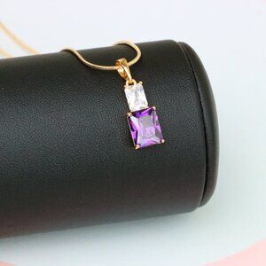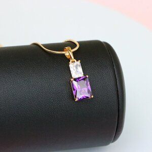 This beautiful purple pendant features a richly colored gemstone and sparkling accent, all set in a high-quality gold-plated brass frame for a polished, modern look.