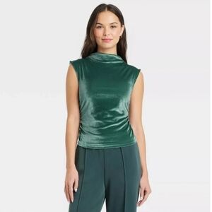 This elegant green velvet sleeveless top offers a luxurious feel and sophisticated style. Perfect for any occasion, it adds a touch of class to your wardrobe.