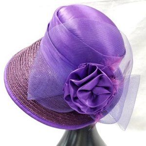 Add a touch of elegance to your outfit with this stunning purple hat. Perfect for any occasion.