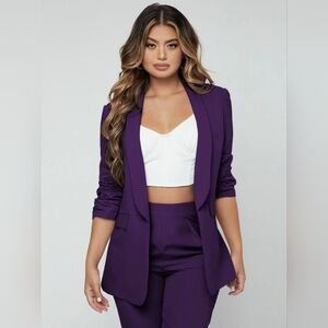 This stylish and elegant purple women's suit is must have in your wardrobe. This ensemble combines sophistication with comfort, and a classic chic fit Ideal for the modern woman.