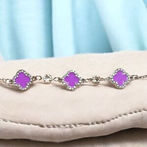 This elegant bracelet features a stunning combination of purple clover and rhinestones, perfect for adding a touch of sophistication to any outfit. Its timeless design makes it a versatile accessory for any occasion.