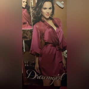 Elegant Raspberry Red Lace Kimono Robe