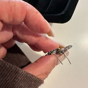 Elegant Real Pearl and Oxidized Silver and Crystal Earrings