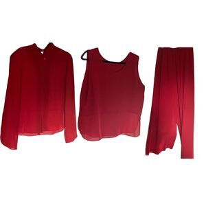 Elegant Red 3-Piece Evening Pantsu Size Large Holiday, Cocktail & Party Wear ✨