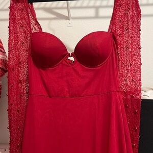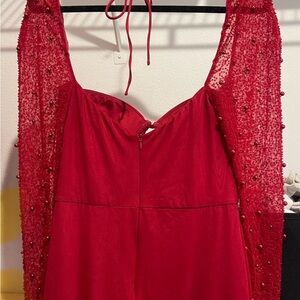 Turn heads with this stunning red Maxi evening dress, featuring a sleek silhouette and eye-catching design. Perfect for special occasions. Form fitting. Great condition.