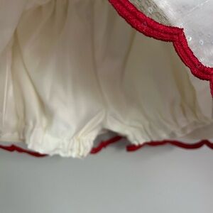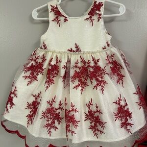 Toddlers white dress with red floral embroidery. Perfect for Christmas, with built in panties.